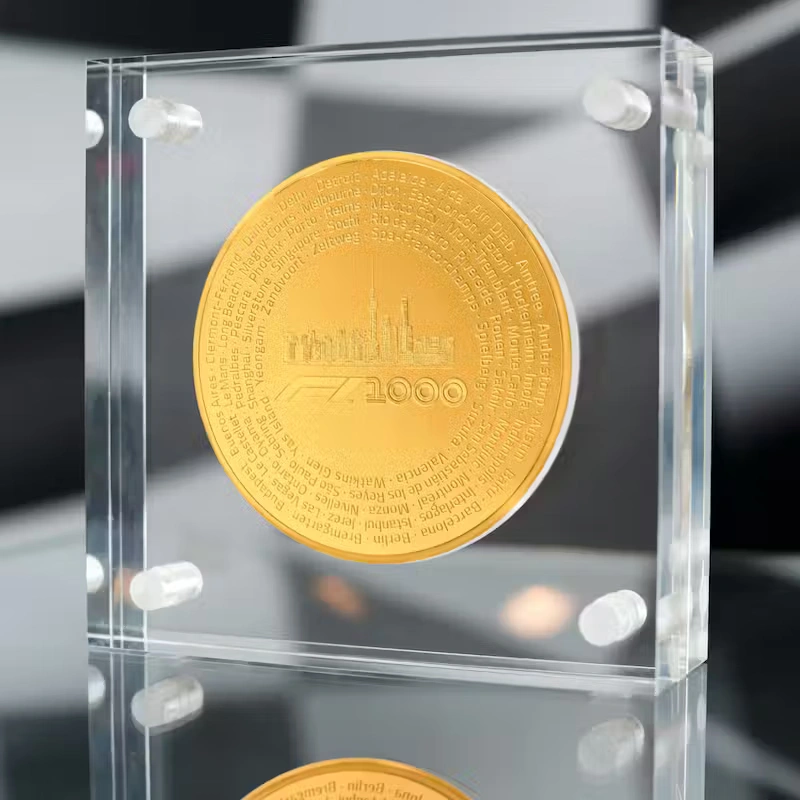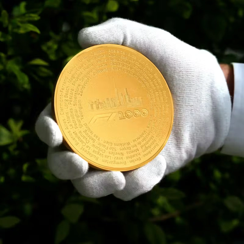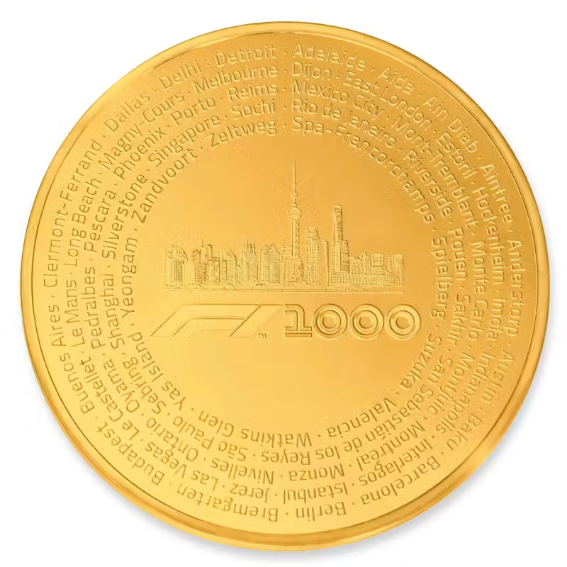 The F1 ® 1000 kilo coins celebrate the 1000th Grand Prix in F1 history, held in Shanghai April 12 to 14, 2019. The coins were unveiled at the Grand Prix by F1 CEO Chase Carey and Rosland Capital CEO Marin Aleksov.