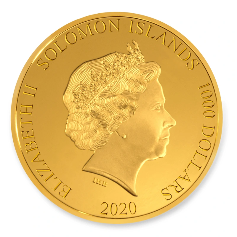 The coin is accompanied by a numbered certificate of authenticity with a statement of metal fineness, weight, and proof quality, as well as the signature of the assayer. Each kilo coin is individually numbered on its edge and is accompanied by a carbonite presentation case and a lucite display case.