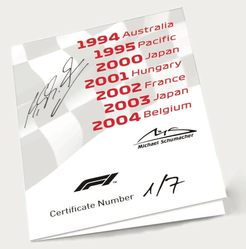 In collaboration with Formula 1®, Rosland presents a new 2020-issue, 1-kilo gold proof coin celebrating the achievements of Michael Schumacher, who won the FIA Formula One World Championship seven times – in 1994, 1995, 2000, 2001, 2002, 2003, and 2004. Accordingly, only seven 2020-issue coins will be minted.
