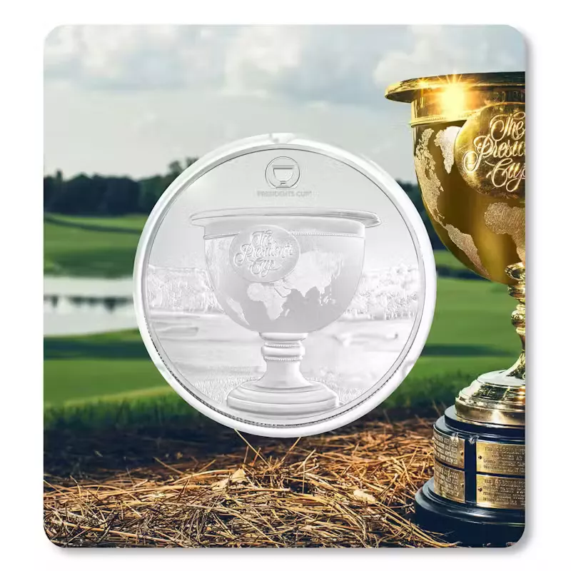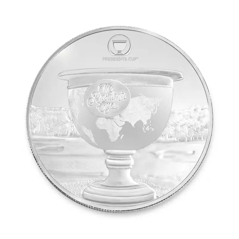 This new silver coin celebrates the U.S. Team’s victory at the 2022 Presidents Cup, held for the first time at Quail Hollow, Charlotte, North Carolina, September 22-25, 2022.