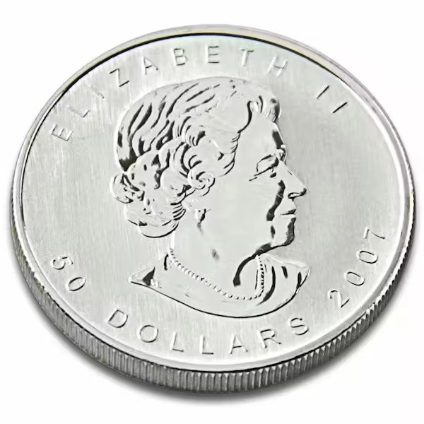 The reverse (back) of the coin depicts the Canadian Maple Leaf.