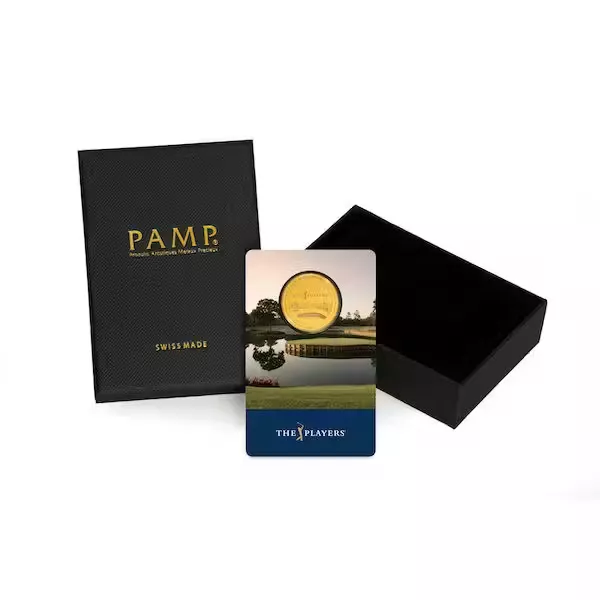 This beautiful, limited edition coin features the iconic 17th green and hole, and is only available from Rosland Capital. The 22mm diameter gold coin is 999.9 fine gold. The coin is legal tender and bears a portrait of Her Majesty Queen Elizabeth II on the obverse. This collectors’ item is specially minted as a proof, their highest level of quality, by the world-famous, Swiss-based PAMP SA.